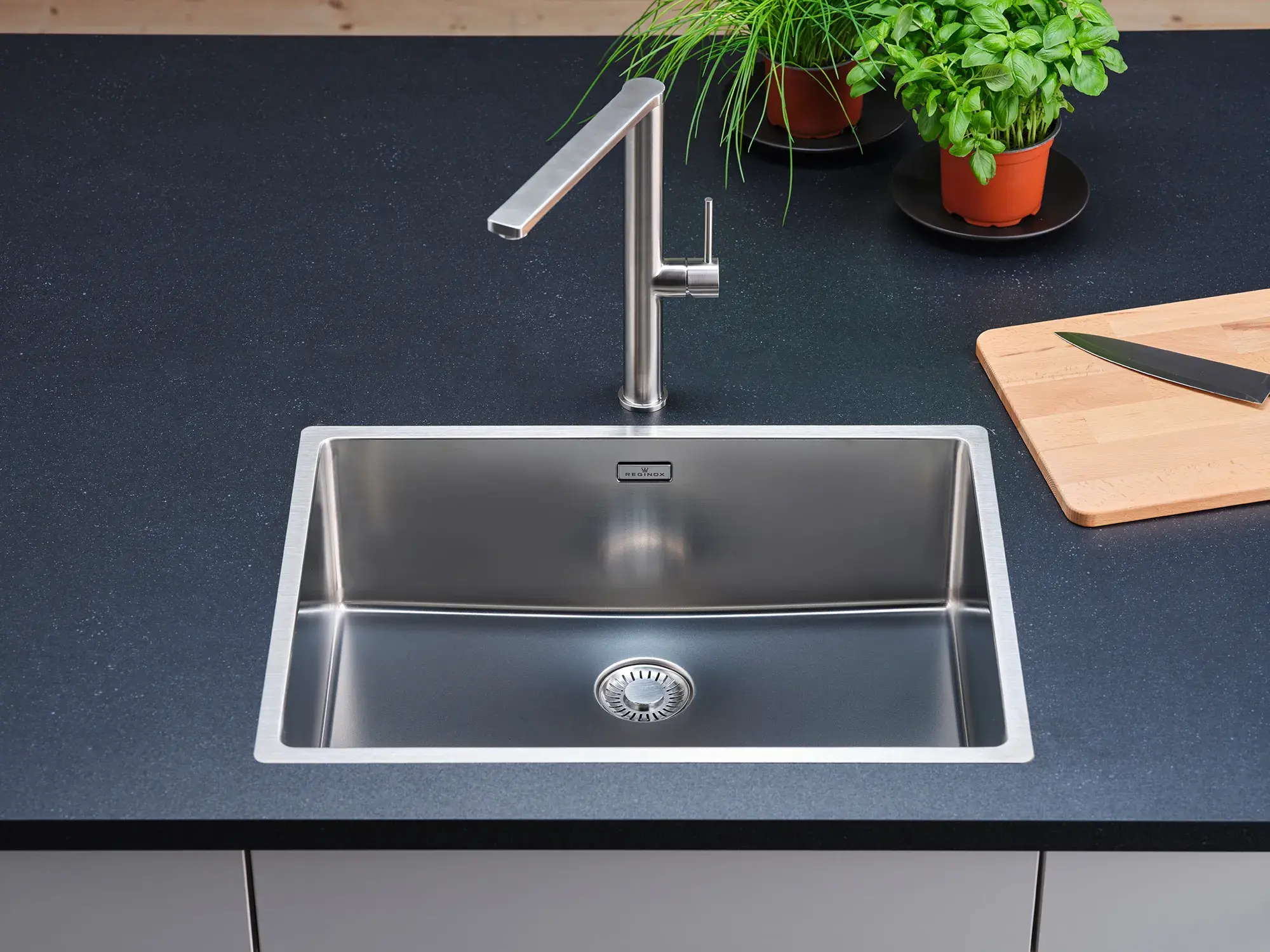 REGINOX Spülen lassen sich mühelos installieren und stehen für eine saubere Verarbeitung mit attraktiven Details an den oberen Rändern. Sie brauchen lediglich die Arbeitsplatte auf Maß auszuschneiden und die Spüle mit den mitgelieferten Klemmen und dem Montageband zu montieren. Alle Spülen werden mit einer übersichtlichen Anleitung geliefert. Neben dem flächenbündigen Einbau sind genauso auch Flacheinbau und Unterbau möglich.